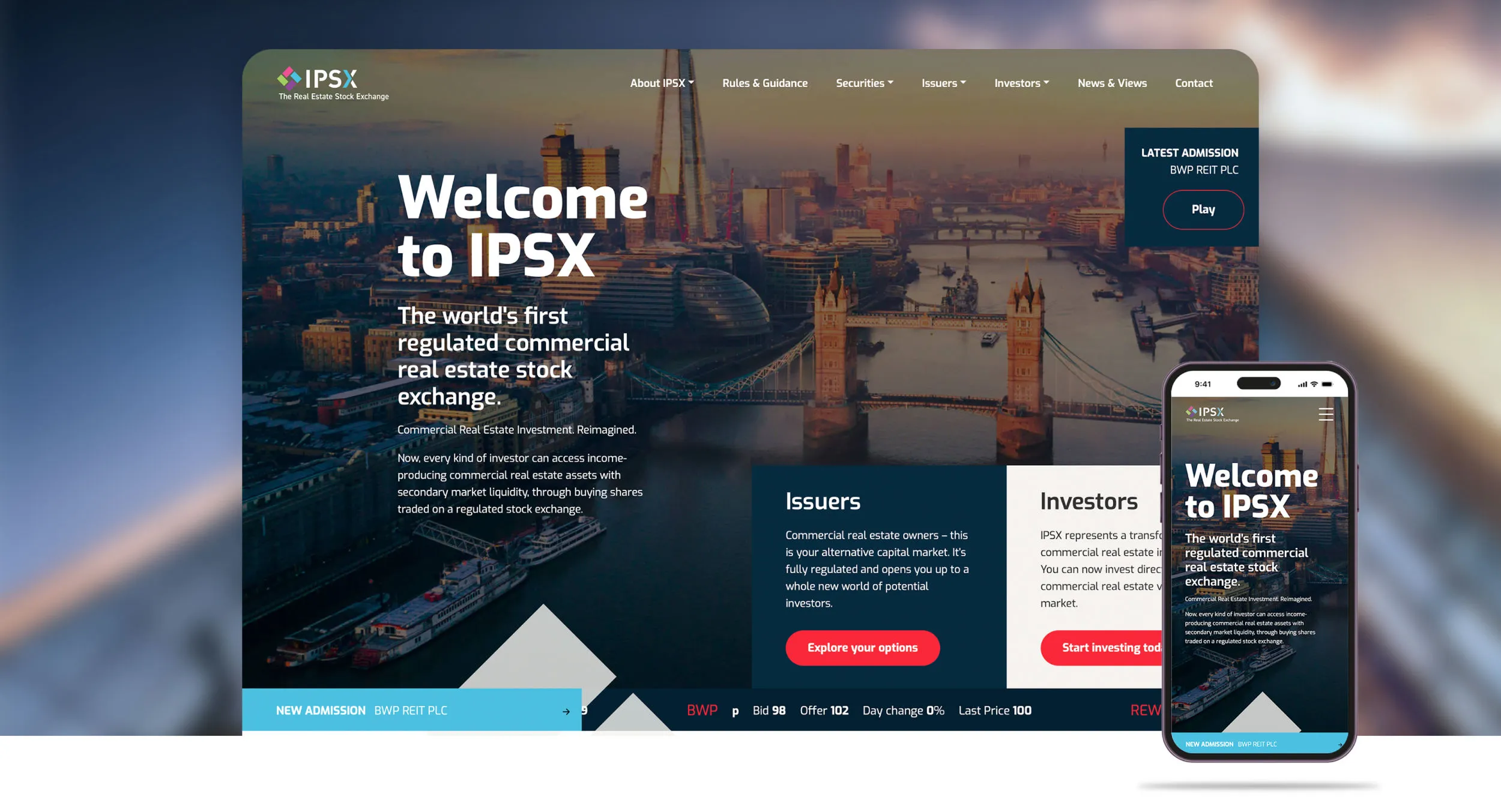IPSX, the International Property Securities Exchange, operated the first dedicated exchange globally for commercial property assets. It provided a public stock market solely for the admission and trading of shares in companies owning and managing individual commercial property assets. We were proud to have been appointed to develop their website.